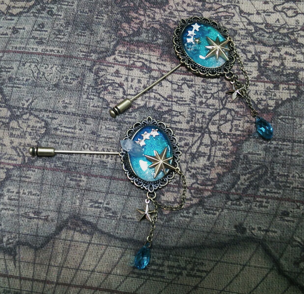 <流星グラス>で集めた星でできたピン。